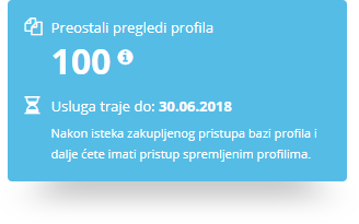 - Pristup Vašim spremljenim profilima je moguć i po isteku zakupljenog pristupa Bazi profila